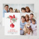 Elegant Red Ornament Christmas Greeting 3 PHOTO Holiday Card