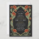 Capture timeless elegance with this Art Nouveau-inspired invitation! Featuring red peonies, leaves against a black background, this design sets the tone for a sophisticated celebration. Perfect for weddings, galas, and milestone events! Please note that the gold on this product is NOT real foil; it is printed flat.