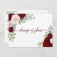 This beautiful postcard is an elegant and sophisticated way to let your guests know if you are in the unfortunate position of having to alter or postpone your wedding plans. It features a hand painted watercolor floral design with roses and foliage in shades of burgundy, red, and blush pink. The front reads "change of plans" in elegant script calligraphy, and the back has space for a custom note where you can explain the situation to your guests.