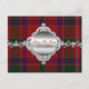 Elegant wedding save the date post card done in the traditional Stewart red, green, and blue tartan plaid. Lovely graphics of an ornate silver tone jewel band and plaque, with green custom text, decorates the front of the card. All text, on the front plaque and back side of the card, is fully customizable to read what you want.
