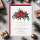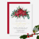 Personalized Elegant Red Poinsettia Floral Christmas Brunch Gold Foil Invitation.