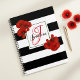 Elegant Red Poppy Black & White Stripe Monogram Planner