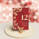 Elegant Red Quinceañera Gold Butterflies Seating Table Number