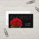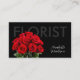 Bold and elegant florist business card design featuring a stunning bouquet of red roses against a deep black background. Perfect for florists, flower shop owners, and floral stylists who want a modern and professional brand image. The subtle "FLORIST" text in the background adds a stylish touch, while your name in graceful script gives it a personal, sophisticated feel. On the back, there's space for all your contact details, plus a scannable QR code for instant access to your portfolio or online shop.