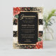 Elegant Red Roses Black Gold Confetti Quinceañera Invitation