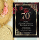 Elegant Red Roses Frame Black 70th Birthday Invitation