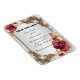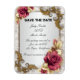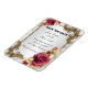 Pretty red roses and gold leaf pattern frame. This beautiful save the date magnet is a stylish, long lasting way to announce your big day. Personalize the magnet by changing the text in the fields provided. You can change font style, size, and color.