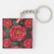 Elegant Red Roses with Lush Green Leaves Pattern Keychain