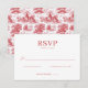 This elegant wedding RSVP card features a minimalist design with a clean white background and a deep red color palette, creating a striking contrast. The layout is simple yet sophisticated, utilizing serif typography for a classic touch, with bold "RSVP" text at the top and clear response options below. The design exudes formality and anticipation, making it perfect for couples seeking an understated yet refined invitation style. Its straightforward composition ensures clarity and focus on the essential RSVP details, ideal for formal occasions.