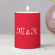 Elegant red script custom couple initials monogram modern Pillar Candle.