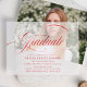 Celebrate your graduate’s milestone with these modern and elegant vellum graduation party invitations, featuring "Graduate" in stylish red calligraphy on a sheer vellum background for a sophisticated and timeless look. Personalize these custom graduation invitations with the graduate’s name, graduation year, school name, and all the essential party details. Perfect for honoring both high school and college graduates, these chic vellum invitations set the tone for a memorable celebration and leave a lasting impression on your guests.
