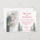 elegant red script pine tree winter wedding photo invitation