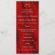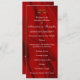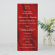 This elegant wedding program features a lush, rippling red silk background with a pair of golden wedding rings. The design is both timeless and modern, and it will complement any wedding style. The program is printed on high-quality cardstock and features a luxurious feel. The text is easy to read, and the overall design is simple yet elegant. The program includes all of the important information that guests need to know about the wedding ceremony, including the order of events, the names of the wedding party, and any special readings or music. This wedding program is a beautiful and thoughtful keepsake that guests will cherish for years to come.