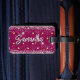 Elegant red silver faux glitter drips monogrammed luggage tag. Beautiful, modern and cool for the trend-savvy and art-loving hip trendsetter. This stylish sophisticated design would be great for girls who enjoy classy sparkly designs. Show off your personal style, look fashionable, trendy and feel stylish and travel with style with a unique design on a luggage tag or customize it over another product of your choice. Personalizing it as a gift for valentines day, Christmas or as a gift in general makes a great gift idea for any woman who loves modern sparkly elegance. PLEASE NOTE: These are flat printed graphics - no real glitter, jewels or raised parts.
