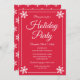Elegant Red Snowflake Script Holiday Party Invitation