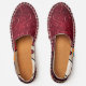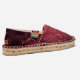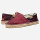 Elegant red espadrilles with a beautiful abstract textured digital painting of whimsical glowing red swirls.