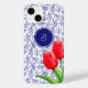 Elegant Red Tulips Spring Floral Blue Monogram Case-Mate iPhone Case