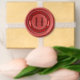 This elegant wedding wax seal features a classic circular design with a prominent central "H" and a deep red hue that exudes warmth and sophistication. The layout includes customizable text in a refined serif font, perfect for personalizing your special day. With its handcrafted texture and vintage aesthetic, this seal captures the timeless beauty of traditional ceremonies, making it an ideal choice for commemorating your wedding celebration.
