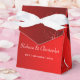 A luxurious vintage red wedding gift bag which would make a great table decoration at the wedding reception. The design features a gorgeous red scrolling pattern, and the custom text on the front can be easily personalised with your own details. Please note this red wedding favor bag was made to match a complete wedding suite, which includes matching invitation, RSVP announcement and more which you can see right here: https://www.zazzle.com/collections/elegant_red_wedding-119318179366725501