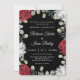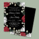 Elegant Red White Floral Greenery on Black Wedding Invitation