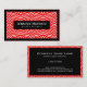 Elegant Red & White Zebra Pattern Black Accents Business Card