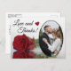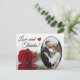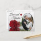 This beautiful postcard is a simple yet thoughtful way to thank your wedding guests. It features a lovely design with your wedding photo in an oval shaped frame, and a single long stemmed red rose reflecting in a pool of water. The caption reads "Love and Thanks" and there is space for your custom note on the back as well as your signature.