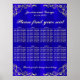 Royal blue wedding seating chart. To edit it please click "Customize" and enter our editing tool to change the info of the chart.