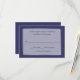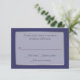 All purpose response RSVP card done in a regency midnight blue purple color, with graphics of a silver tone edged white semi transparent text area, with custom black text. Size is small enough to fit in with all the popular invitation sizes. Customize the text to suit your needs.