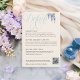 This elegant vintage Regency Era English & French garden wedding invitation "Details" enclosure card features a soft soft dusty blue and purple wisteria watercolor floral Bridgerton aesthetic, with "Details" calligraphy script typography and wording details on the front, and peacock perched in the garden on stone floral planter and fence over beautiful dusty cream background on the back side. Easily personalize the template wording with your wedding details and easily upload your wedding website QR Code! You are welcome to edit each component further for perfect spacing and placement once your wording is entered, by clicking the blue "Edit using design tool" button at the bottom of the "Personalize" window. Navigate to the "layers" tab in the left hand column of the edit screen, select the front or back side layer, then click on the layer element you would like to change and make it your own - click "done" button in the upper right hand corner of your screen to make it yours. ♥ Check out the full collection (scroll below) with matching wedding invitation, details enclosure cards, return addressed envelope, and much more! Custom design requests and template questions are always welcome - click the "message" button or email directly (with a quick response time): contact@figandlilyco.com. Design is lovingly created Fig and Lily Studios ♥