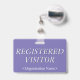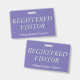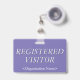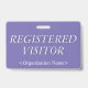 This respectable badge design features the message "REGISTERED VISITOR", and a customizable company name or other custom message. A badge like this could be used to indicate that a visitor or guest at a workplace is allowed to be there. [~Z0000307]