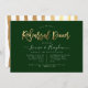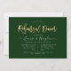Elegant and modern gold handwritten script Rehearsal Dinner Invitations and Deep Forest Green, a DIY background color.