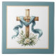 Elegant Religious cross flowers Ceramic Tile