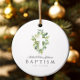Elegant Religious Cross Green Botanical Baptism Ceramic Ornament
