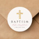 Elegant Religious Cross Pink Script Girl Baptism Classic Round Sticker