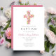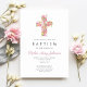 Elegant Religious Pink Floral Cross Baptism Invitation