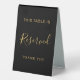 Enhance your event setup with this elegant reserved display table tent, designed to add sophistication and clarity to your seating arrangement. Perfect for weddings, restaurants, or corporate events, it ensures reserved spaces are beautifully marked with timeless style.