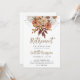Elegant rustic floral retirement party invitation in earthy terracotta, pink and white hues. Pretty floral with a platinum gold handwritten script calligraphy typography font.