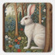 Elegant retro boho white rabbit woodland floral square sticker
