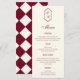 Elegant Retro Checkered Burgundy Wedding Menu