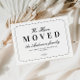 Announce your new home to family and friends with this simple retro black and white design of script lettering and a black retro frame.