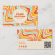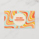 Colorful and fun with details and colors that make your business catchy and different. A Vintage retro Psychedelic colorful wavy lines square business card. That features a handmade groovy boho abstract wavy lines With blue and orange and beige cream colors. It has nostalgic seventies and sixties vibes and colors and groovy fonts. With customizable name and profession and social media . Perfect for a small business branding.