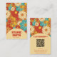 A Vintage retro colorful floral flowers business card. As you see it features a handmade groovy floral pattern of boho abstract flower daisies .It has nostalgic seventies vibes and colors and groovy fonts. And you can simply and easily customize the name and profession and QR code. By clicking on the personalize button. So grab it and make it yours so you your business is catchy and way different.