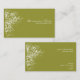 Elegant Retro White Flower Swirls Olive Green Business Card