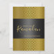 Luxurious Ramadan or Eid Mubarak greeting card with engraving gold rhombus pattern and black banner with monogram script font type. Greetings to your friends and family who will be fasting during Ramadan. All text could be easily customized.