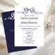 Yes, you can print on the back of your invitation for free! Most designs already have a corresponding design on the back that can be personalized using the Design Tool and going to Layers. This is a great way to communicate more information or further personalize your Elegant Ribbon Bow Romantic Wedding Navy White Invitation. The option is really up to you.