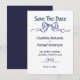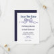This Elegant Ribbon Romantic Wedding Save The Date Card is designed with navy text on a white background with navy bow accents. The front text includes: the Bride and Groom's Names, Wedding Date, Location, Address and Reception Details. The reverse is a matching navy background. To personalize, simply insert your text into our easy template, replacing the sample. Be sure to view the matching Wedding Invitation and Accessories.