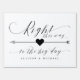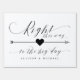 Simple Elegant Calligraphy Script Wedding Ceremony Right This way to the big day Arrow pointing right Sign, in beautiful flowing fancy letters and your personalized names. A stylish yet simple formal design in black and white or any background color you choose. Just click the customize further link, shown under the text personalization area on the right, and choose your custom color background. This sign poster template makes it fast and easy to create stunning additions to your wedding decor. Signs can be enlarged, there are many sizes to choose from, as well as options for custom framing and matting. Wedding this way custom signage.
