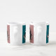 Each mug showcases a beautifully illustrated portrait—one of a refined gentleman against a rich teal background, and the other of a graceful lady adorned with delicate florals on a blush pink background. The designs are elegantly intertwined by soft floral vines, with gold initials that symbolize unity and shared affection. Beneath each quote, the date “February 14, 2025” is elegantly inscribed in gold script, making these mugs a perfect keepsake for anniversaries, weddings, Valentine’s Day, or any romantic milestone.