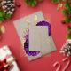 This elegant wedding invitation features a lush, romantic floral bouquet in purple with gold faux foil and glitter foliage. Customize the gold-colored text in stylish fonts on a clear rectangle.