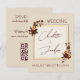 Elegant Romantic Rusty Rose Autumn Wedding Enclosure Card. Invite your guests in style with one of our elegant and romantic fall wedding invitations and this enclosure card. The beautiful design features a delicate gold geometric frame accented by moody watercolor bouquets of burgundy and rust orange roses against a warm cream background. This exquisite stationery includes a convenient QR code registry and RSVP information on the back, making it perfect for modern couples planning a sophisticated autumn celebration.
